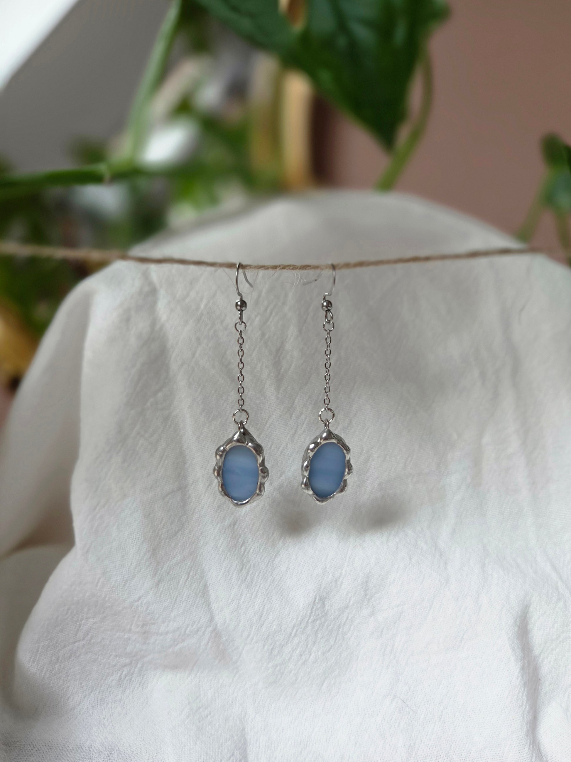 Bijoux en vitrail Tiffany en verre turquoise irisé ou bleu opaque✨