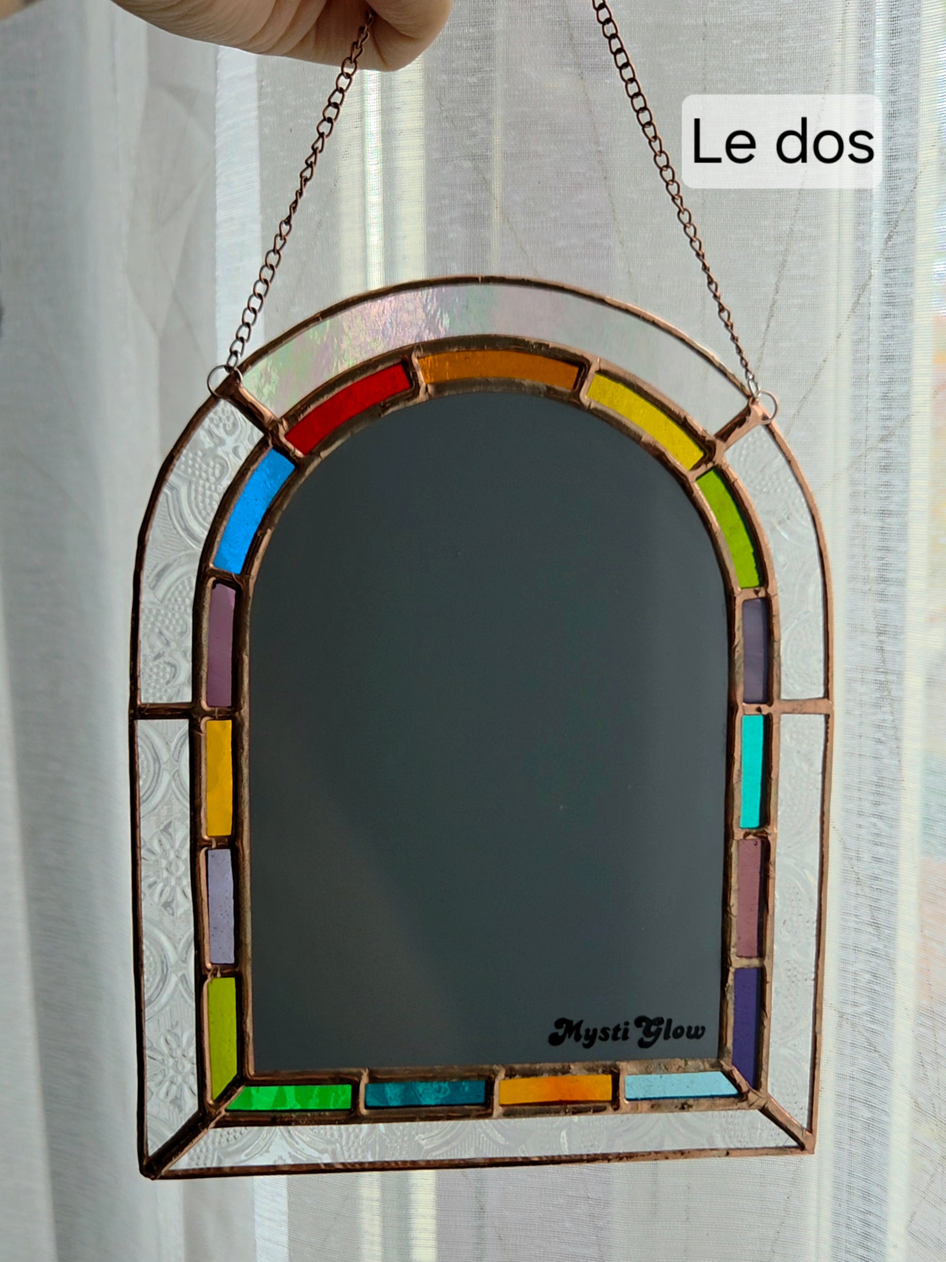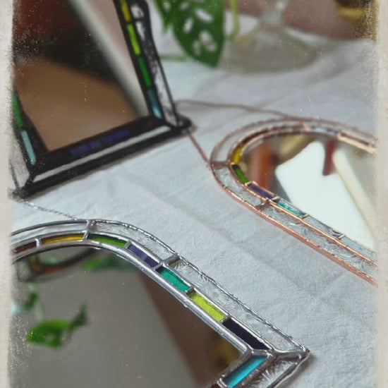 Ce miroir magique est personnalisable et fabriqué à partir de chutes de verre coloré recyclées . Chaque pièce est unique et réalisée selon tes choix, pour apporter une touche magique à ton intérieur.