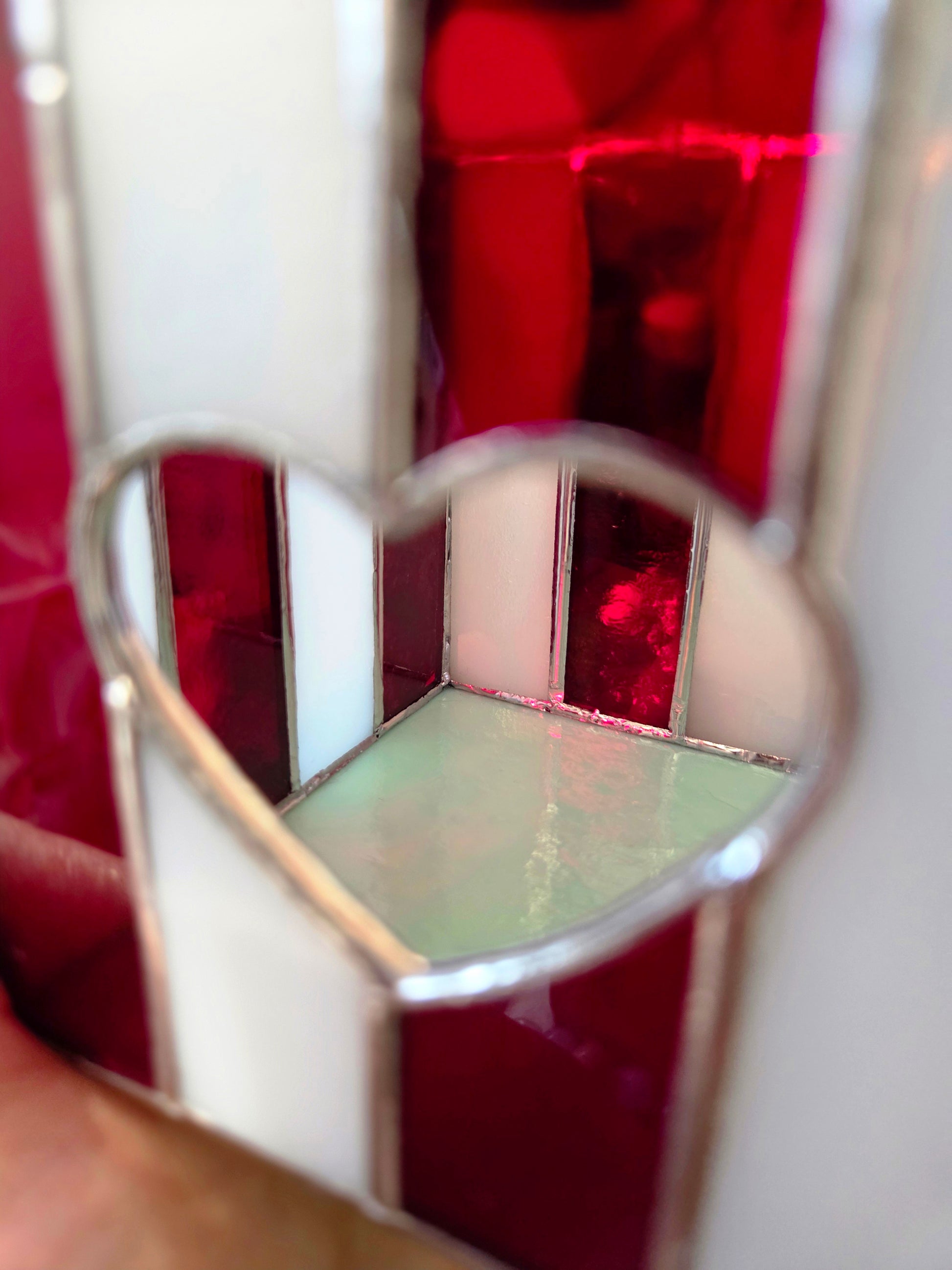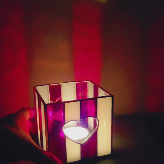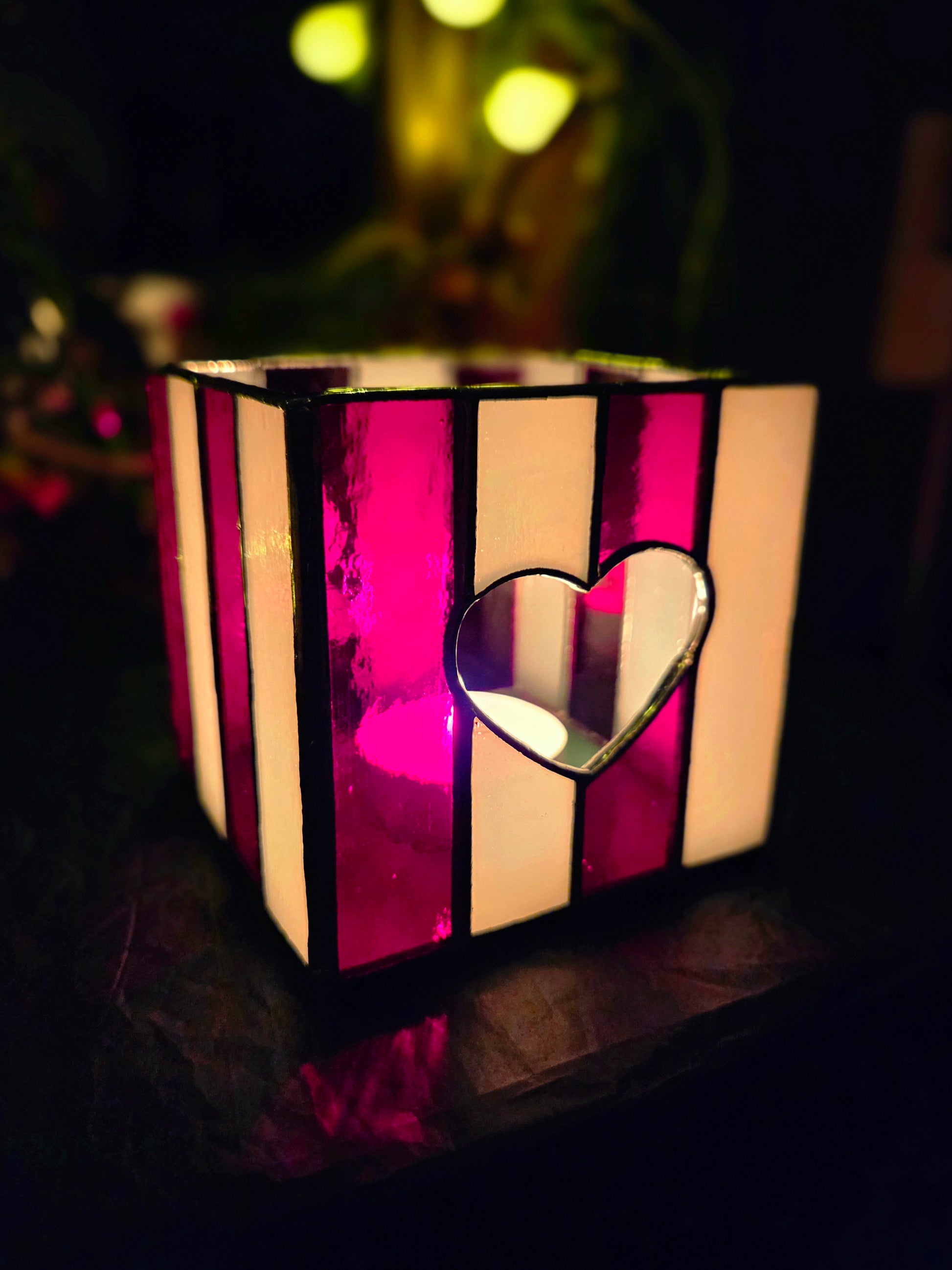 Ce photophore crée une ambiance douce, chaleureuse et pleine de tendresse. Chaque reflet dans le vitrail, qui danse sur vos murs, apporte un instant de douceur et de magie. Parfait pour se détendre, rêver ou simplement se laisser bercer par la lumière.