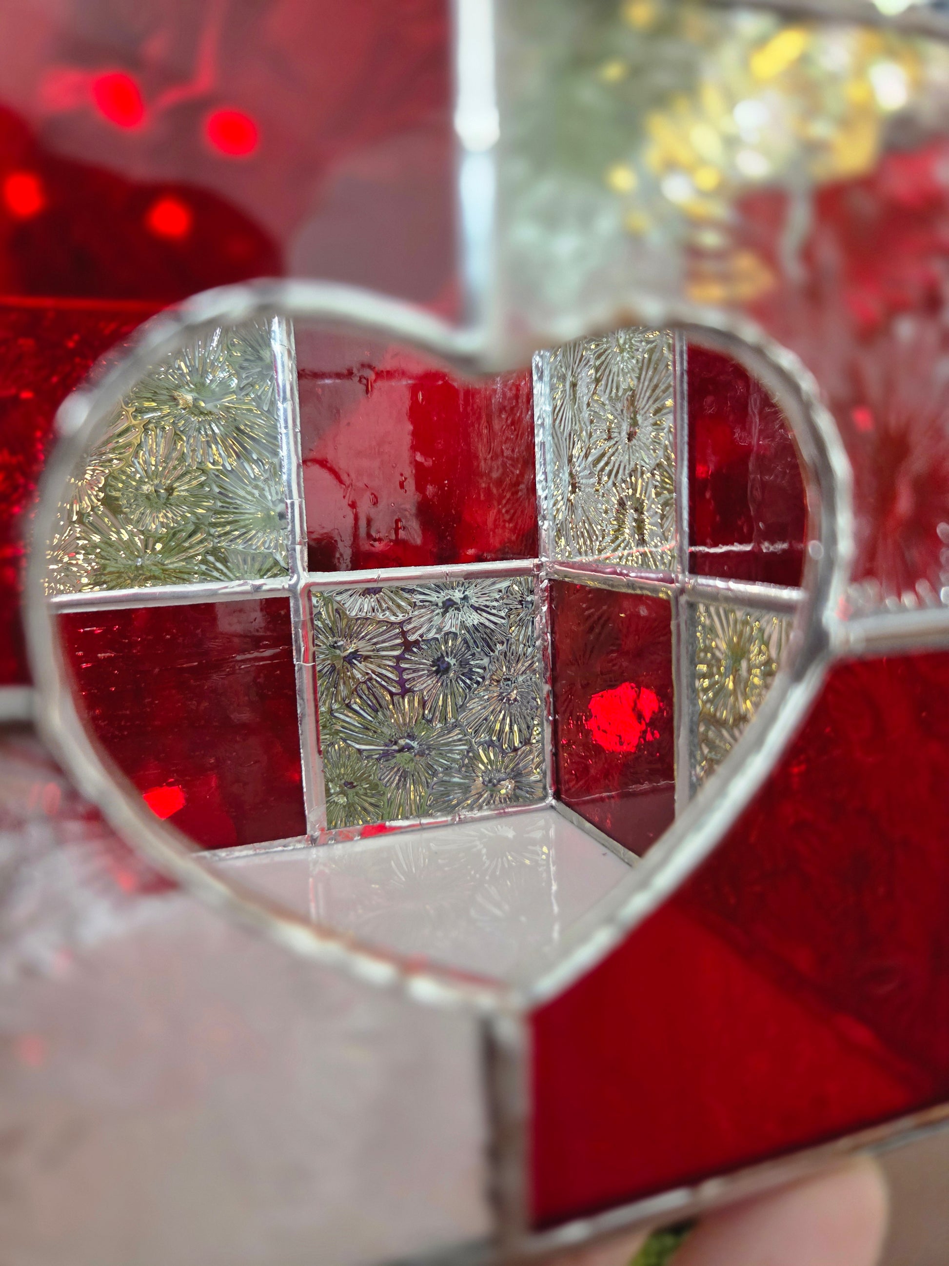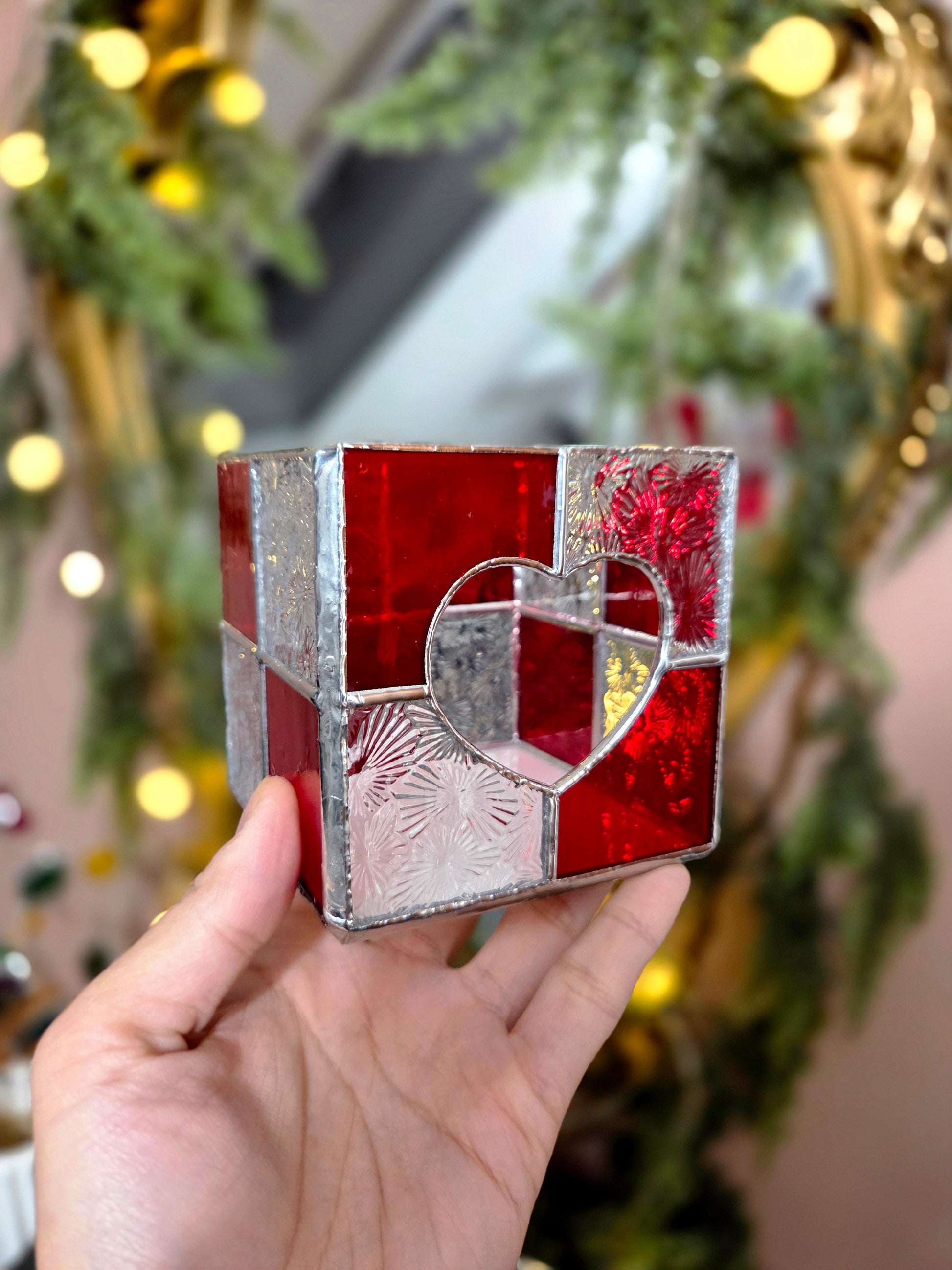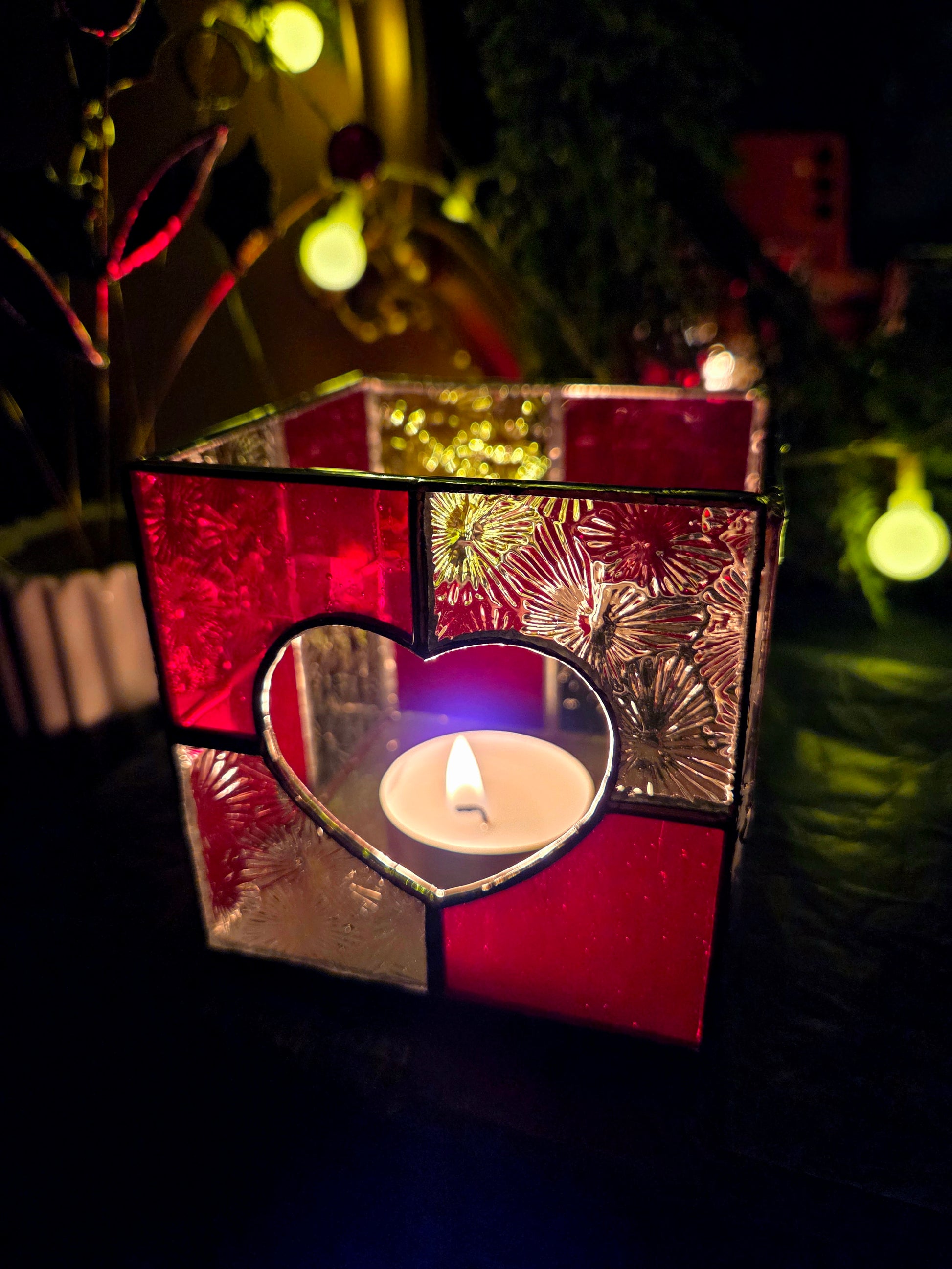 Ce photophore crée une ambiance douce, chaleureuse et pleine de tendresse. Chaque reflet dans le vitrail, qui danse sur vos murs, apporte un instant de douceur et de magie. Parfait pour se détendre, rêver ou simplement se laisser bercer par la lumière.